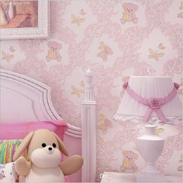 Modern Non Woven Fabric Tv Background Kids Room Living Room Bedroom Pink Blue Bear Cartoon Cute Pattern Boy Girl Wallpaper Roll